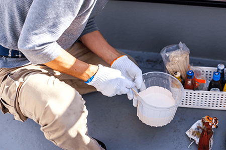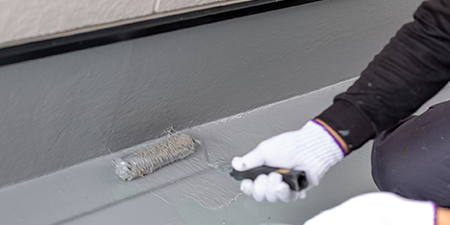 防水性の高い塗料を使い、厚い層になるように塗装していきます。