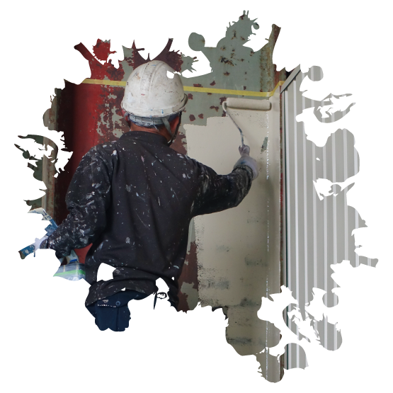 塗料を木部や鉄などの材料に塗り付けて塗膜を作り、表面を保護したり美観を保つために行う工事。